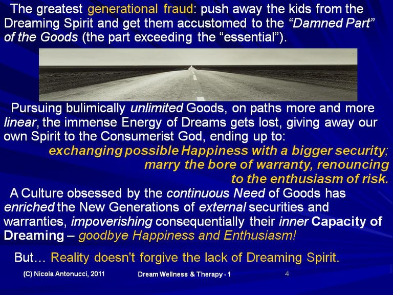 How and why the New Generation suffers – and from what? A poverty of Dreaming Spirit, a richness of (im)material Goods never seen before.