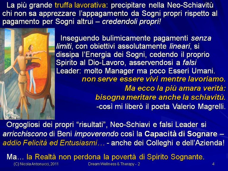 Il Lavoro "soffre", e così le Aziende - ma... di cosa? Una povertà di Spirito Sognante, una povertà di appagamenti, contrapposta a una ricchezza di pagamenti per alcuni che abdicano al privilegio di Sognare... Sogni propri!