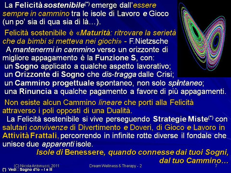 - Come diventare liberi di vivere una Felicità sostenibile senza comprometterla con Felicità momentanee, fugaci, effimere.. poiché la vera Felicità sostenibile è un “ottovolante” che ci risolleva dalle cadute, dagli errori, dalle malattie con la Forza di Spirito che ci mantiene in cammino verso nostri Orizzonti di Sogno!