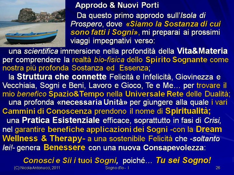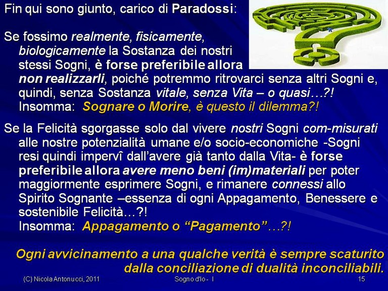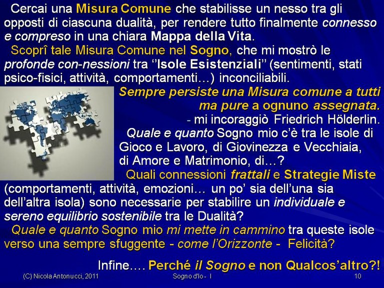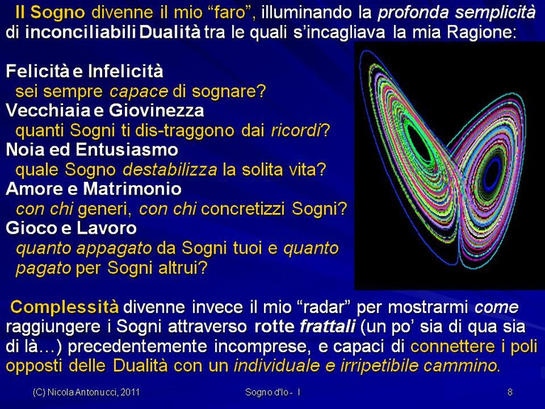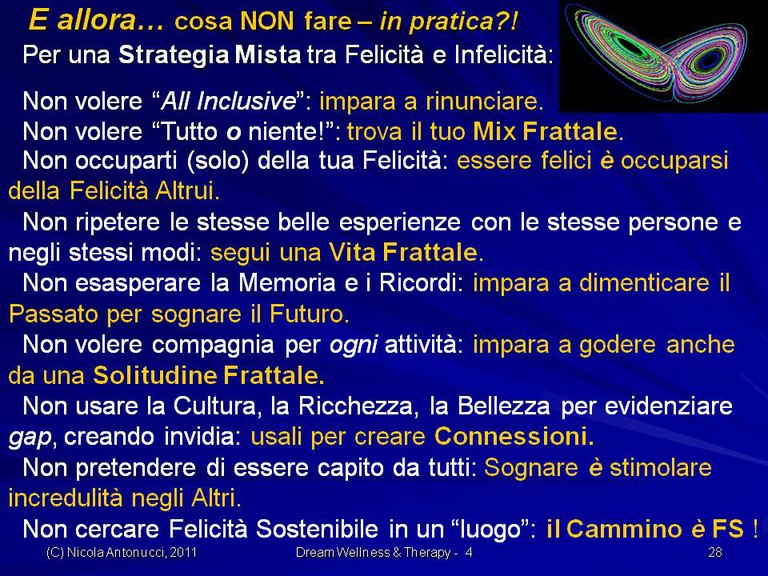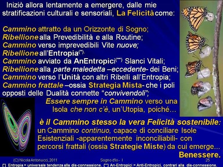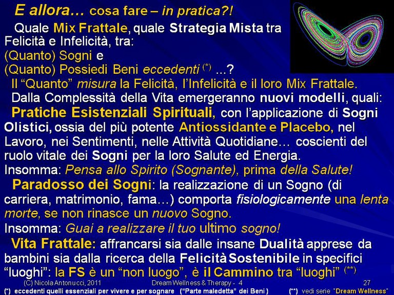 - Come assicurarci “isole” di Benessere dalla Connessione delle precedenti Dualità attraverso il nostro Cammino frattale (un po’ sia di qua sia di là…) verso Orizzonti di Sogno e verso Felicità sostenibile.